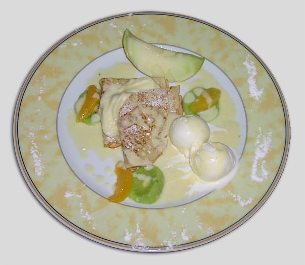 Flensjes met Yoghurtijs, vanillesaus en vers fruit