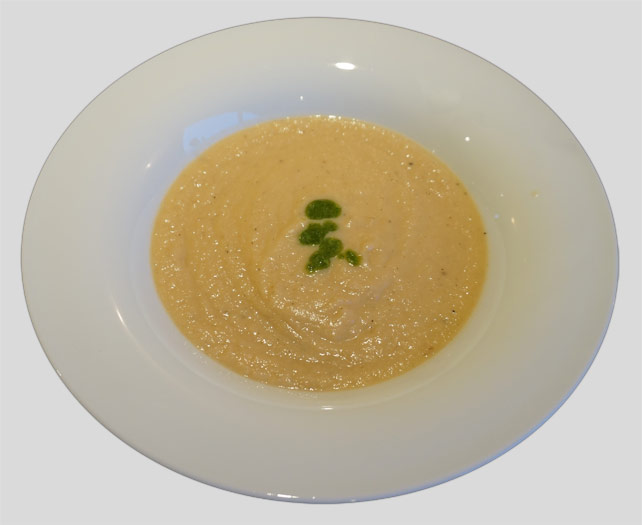 Knolselderijsoep met peterselie-olie