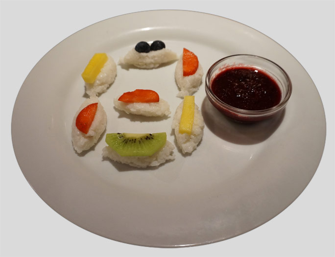 Dessert sushi met fruit