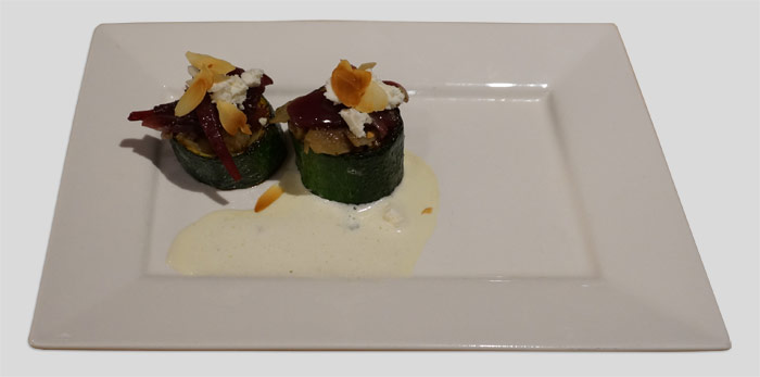 Gevulde courgette met auberginecompote rode uiensalsa