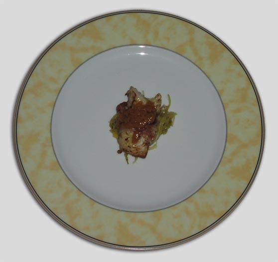 Kabeljauwfilet op een bedje van geconfijte prei met vanille beurre blanc