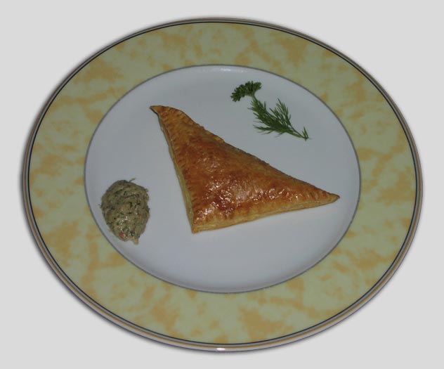 | Bladerdeegenvelopje met krab en pastis | Voorgerecht |