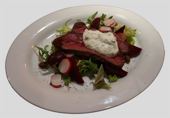 Salade met gebraden rosbief met mierikswortelcrème Voorgerecht